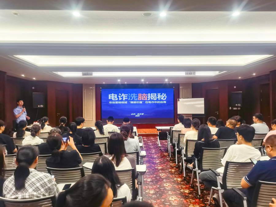 近日,杭州市反詐宣防人才培訓中心金牌講師趙永恒警官在巨星九堡總部為巨星員工講授《電詐洗腦揭密》專題講座。