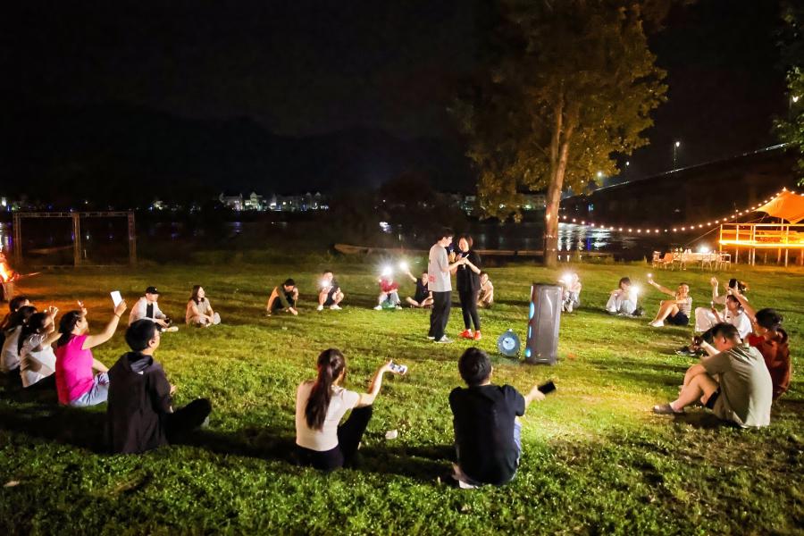 夜幕降臨,篝火晚會點燃熊熊烈焰,悠揚的歌聲在星空中綻放。我們一起點亮孔明燈,許下美好的祝愿。抬頭仰望,盡是一盞又一盞絢麗彩燈。
